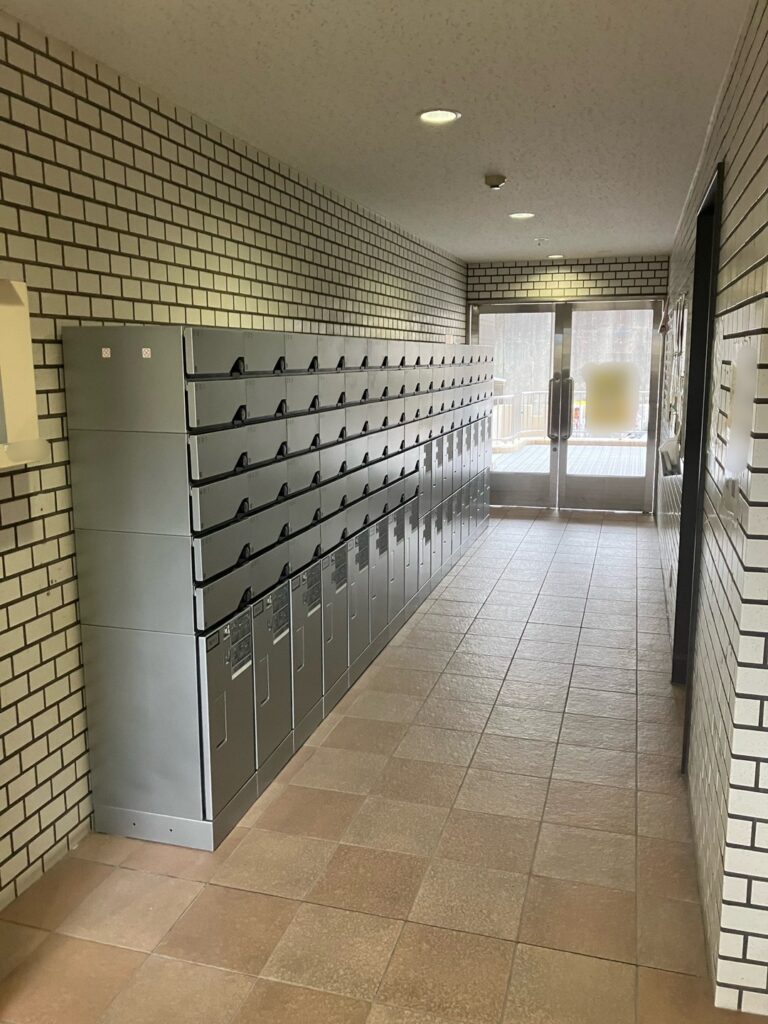 実際に既築のメールボックスを改修して宅配ボックス付きのメールボックスに変更された例をお見せいたします。ポスト一体型タイプは高さが1600mmで決まっていますが、物件数によって必要なポストの数が違います。組み合わせでお選びいただくことができるので、こちらの物件では、世帯数に合わせたメールボックスと宅配ボックス数の組み合わせをお選びいただきました。入居者さまからも大小さまざまな荷物が受け取れるようになったと好評いただいております。管理会社さまが変わるタイミングでメールボックスを入れ替えることも多いようです。